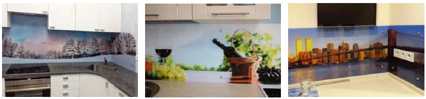 Скинали из закаленного стекла М1 толщиной 6 мм с традиционным сквозным крепежом - хром, хром матовый или золото на выбор. Эти панели имеют незначительный зеленый оттенок, характерный для обычного стекла, который более заметен на картинках с белым фоном и изображениях в светлой, пастельной гамме. Поэтому для них рекомендовано подбирать насыщенные, яркие или темные изображения. Скинали из закаленного ОСВЕТЛЕННОГО стекла толщиной 6 мм с традиционным сквозным крепежом - хром, хром матовый или золото на выбор. В отличии от панелей из стекла М1 абсолютно не имеют зеленого оттенка, что гарантирует отменную цветопередачу без искажения на любых изображениях. Это самый востребованный продукт, благодаря оптимальному соотношению цены и качества Скинали под приклейку из закаленного стекла М1 толщиной 6 мм. Клеевой крепеж на жидкие гвозди решает сразу несколько задач: улучшает внешний вид благодаря отсутствию видимых креплений, облегчает процесс монтажа, позволяет завести панель под верхние шкафы гарнитура. Для этих панелей требуется оштукатуренная или окрашенная стена без обоев |