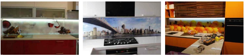 Наше стекло соответствует всем российским ГОСТам и международным стандартам производства, а это значит что оно ударопрочное, стойкое к перепадам температуры. Скинали не боятся нагрева и влажности (поскольку стекло уже закалено), а также не царапаются и не трескаются.