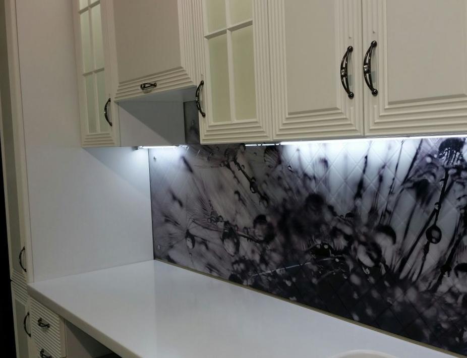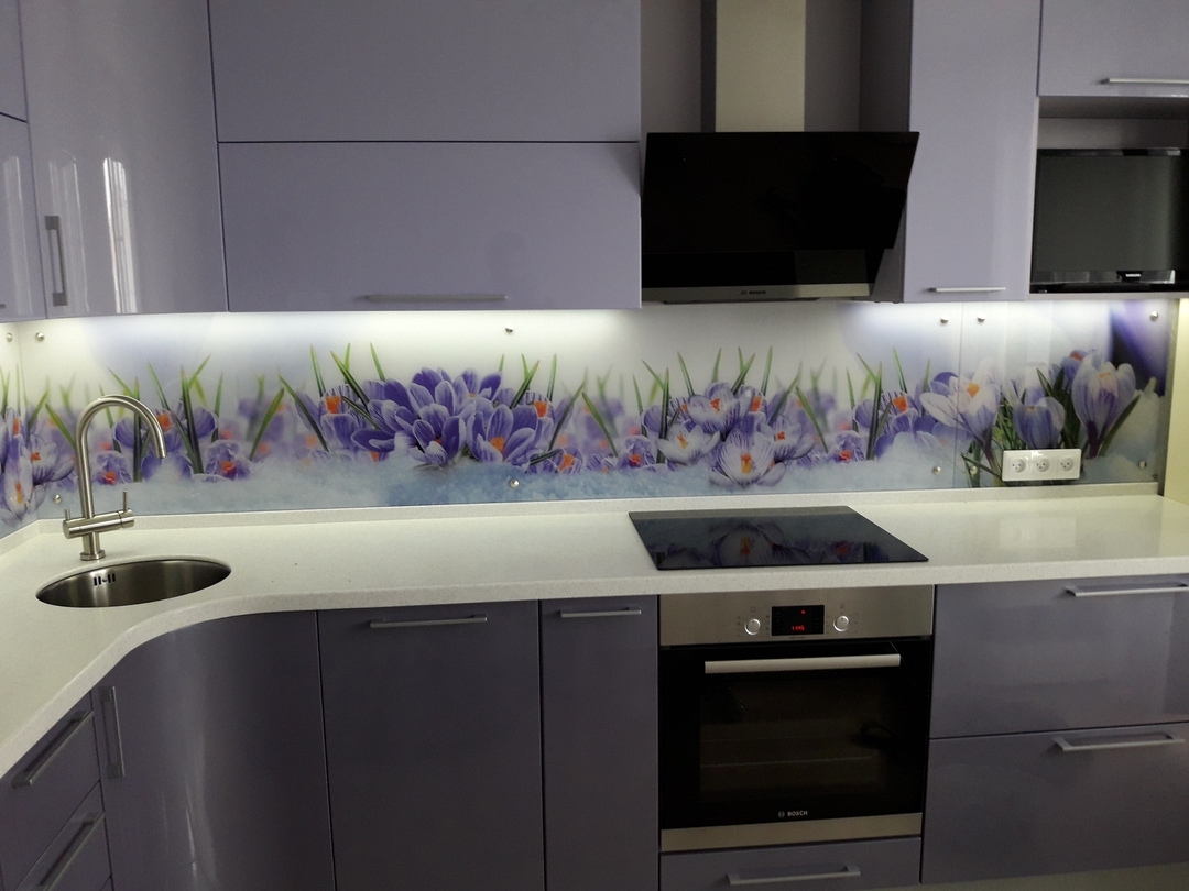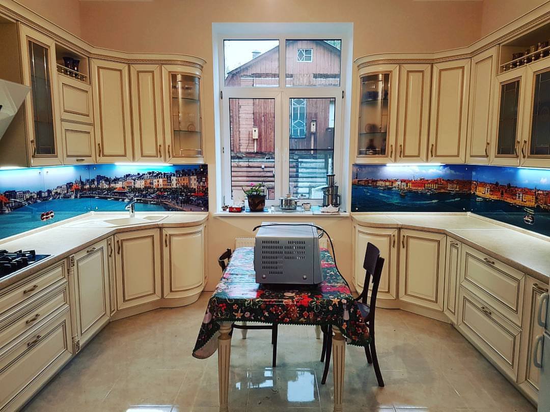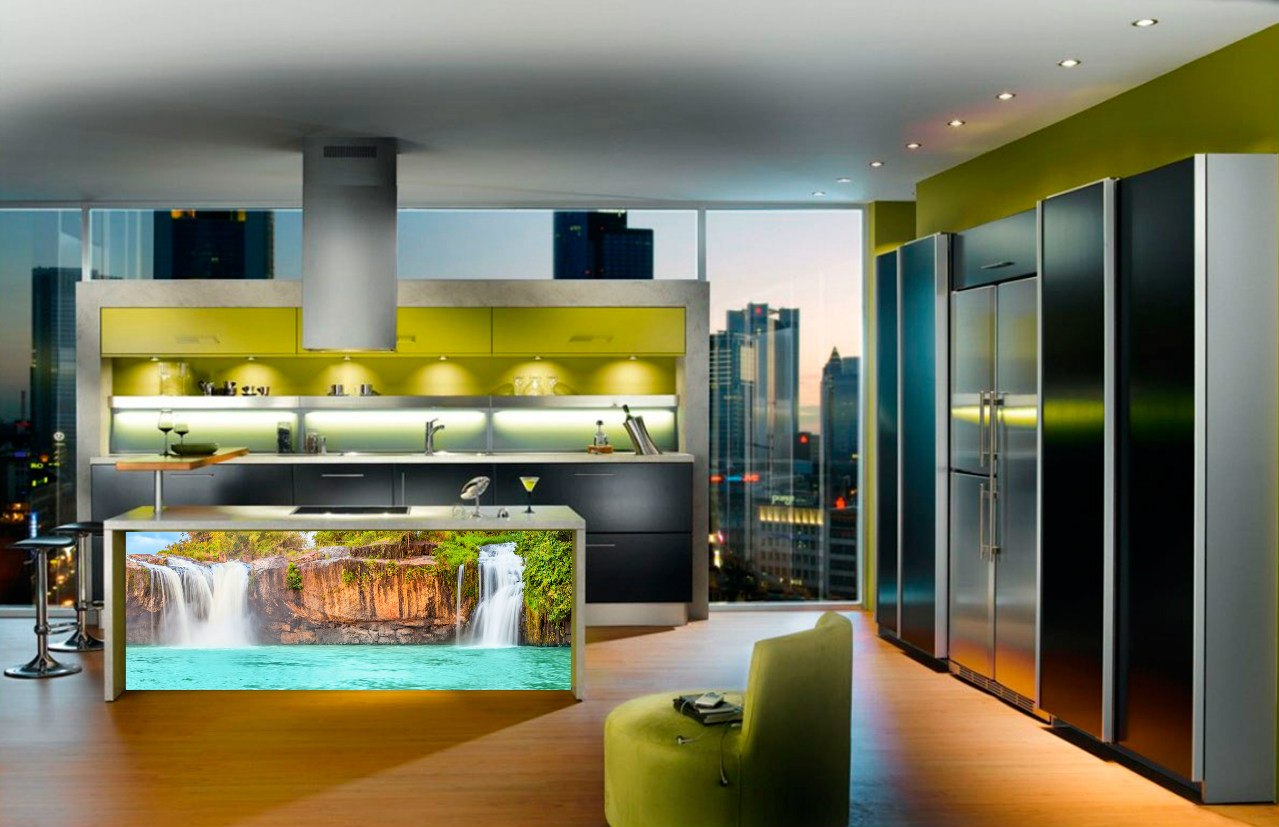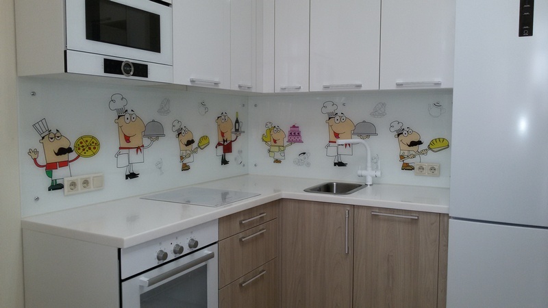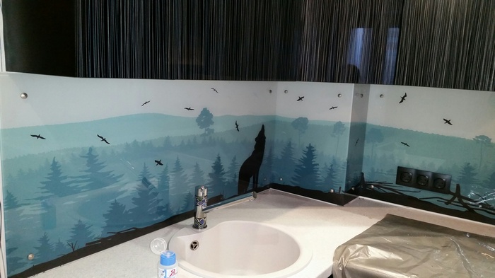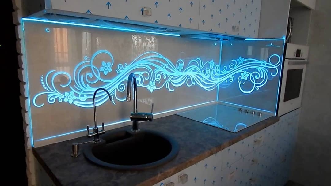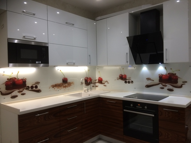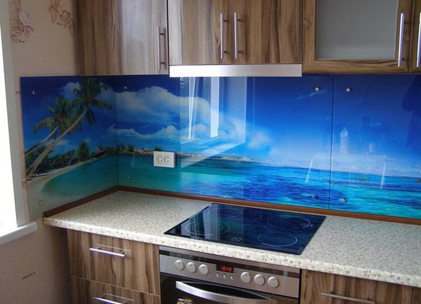 Но, это не главная особенность стеклянных панелей – главная особенность заключается в том, что UV-печать позволяет качественно нанести практически любое изображение, будь то фотография природы, города, лесной пейзаж, или просто набор орнаментов или схематичных изображений. Эта возможность делает скинали отличным элементом дизайна (дизайнер может изобразить на стеклянной поверхности практически все что угодно). Поэтому стеклянные фартуки являются превосходным украшением вашей кухни.