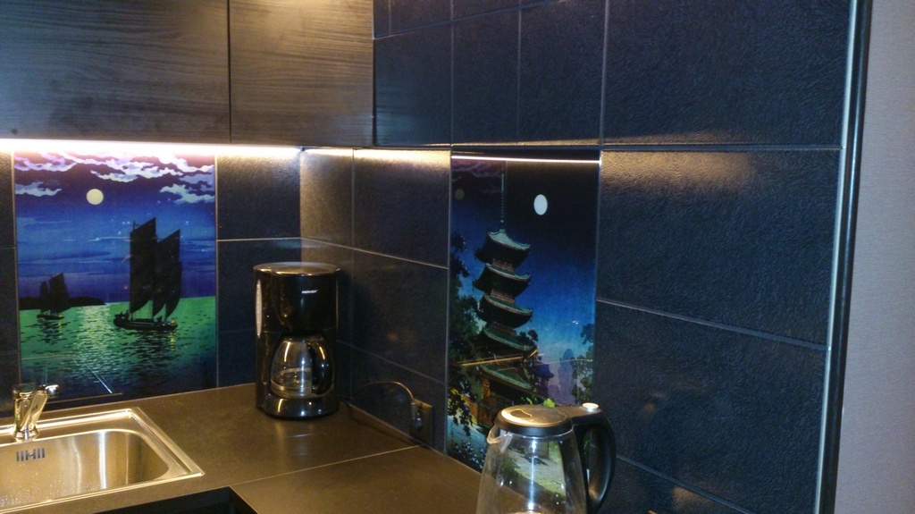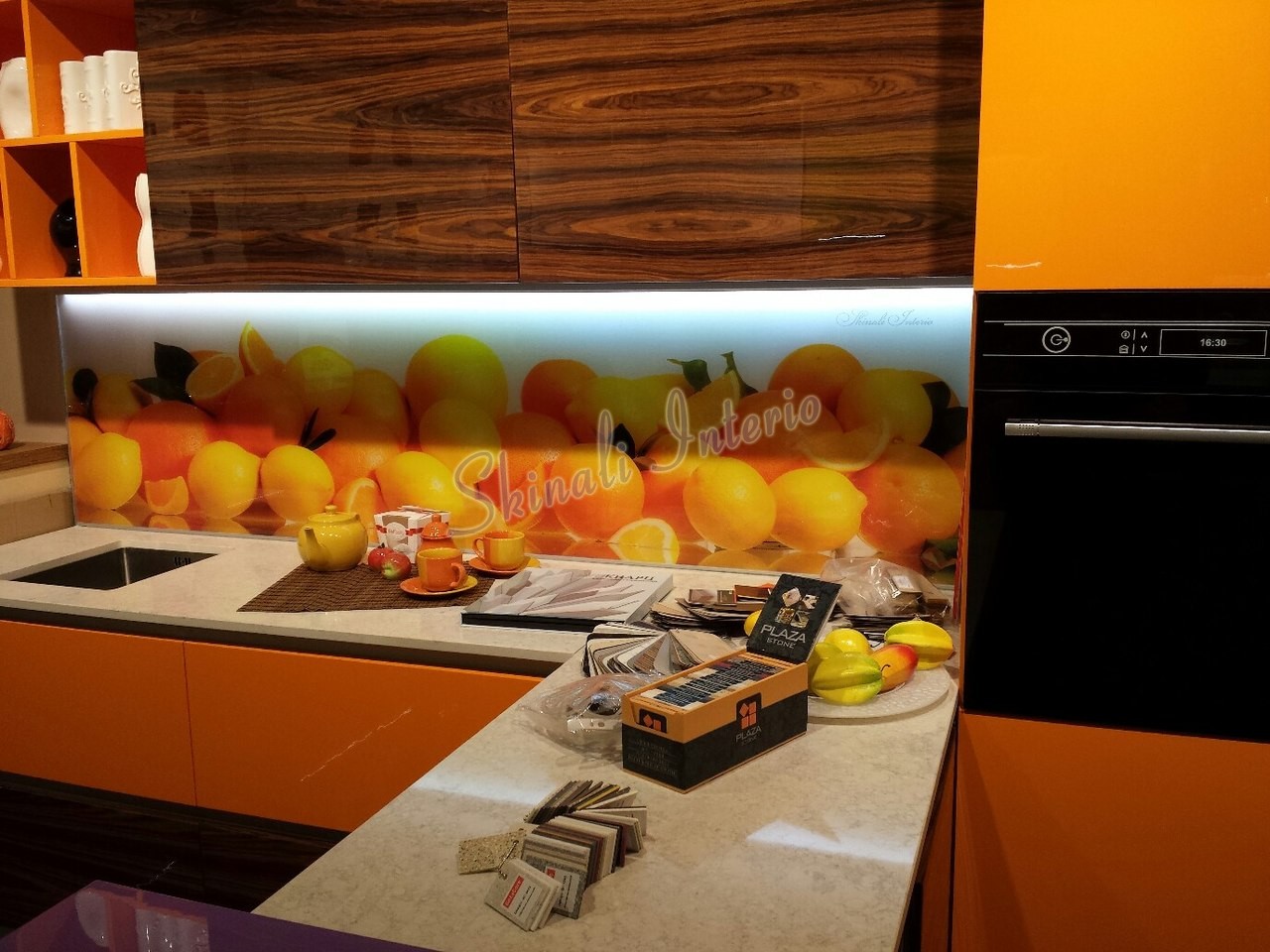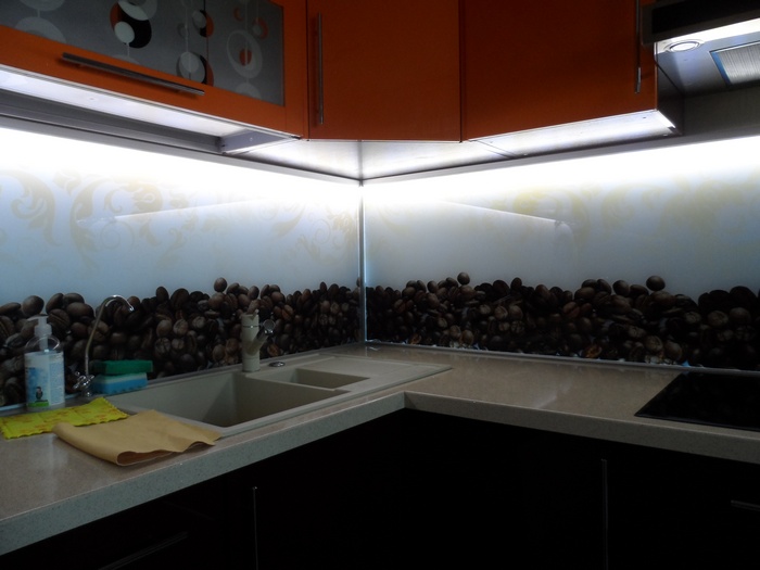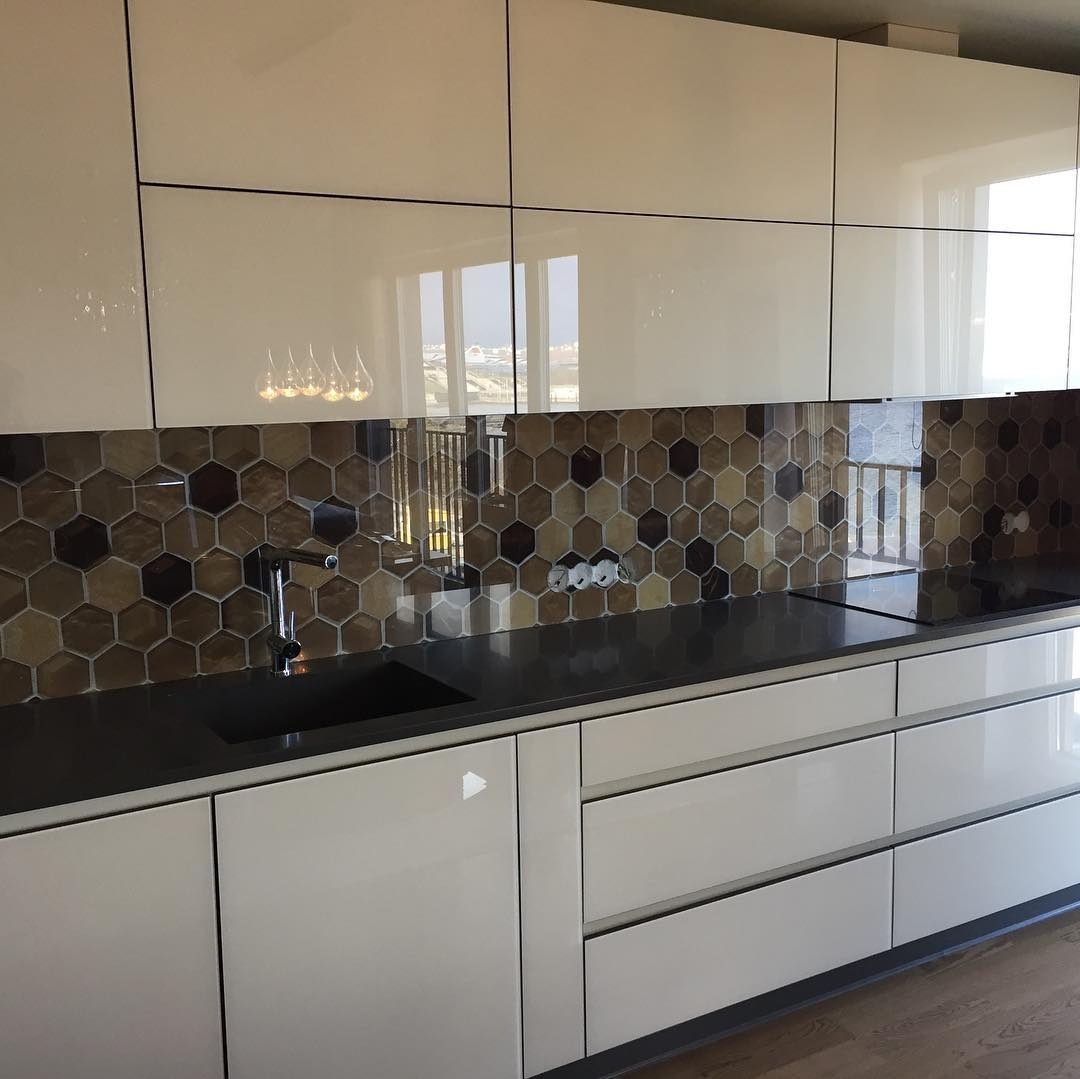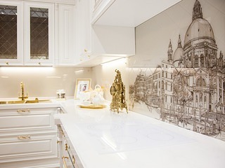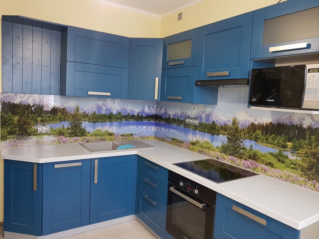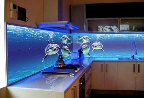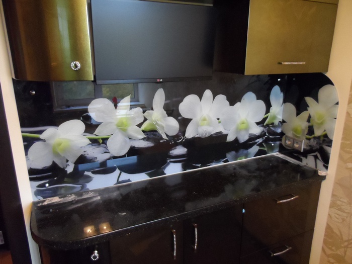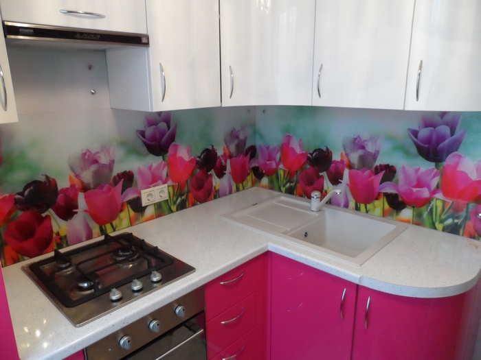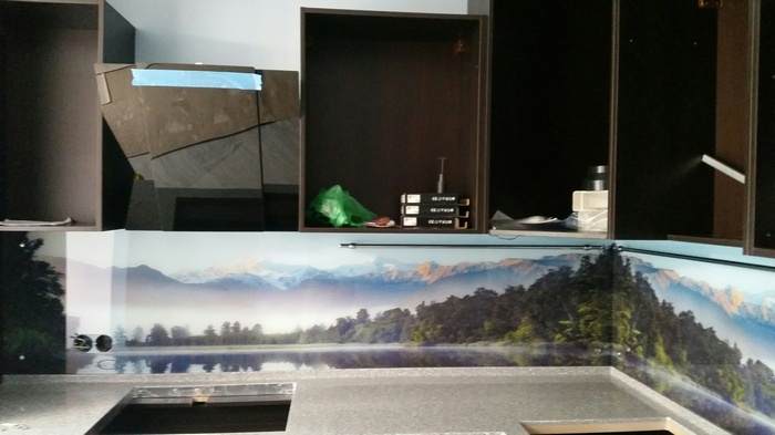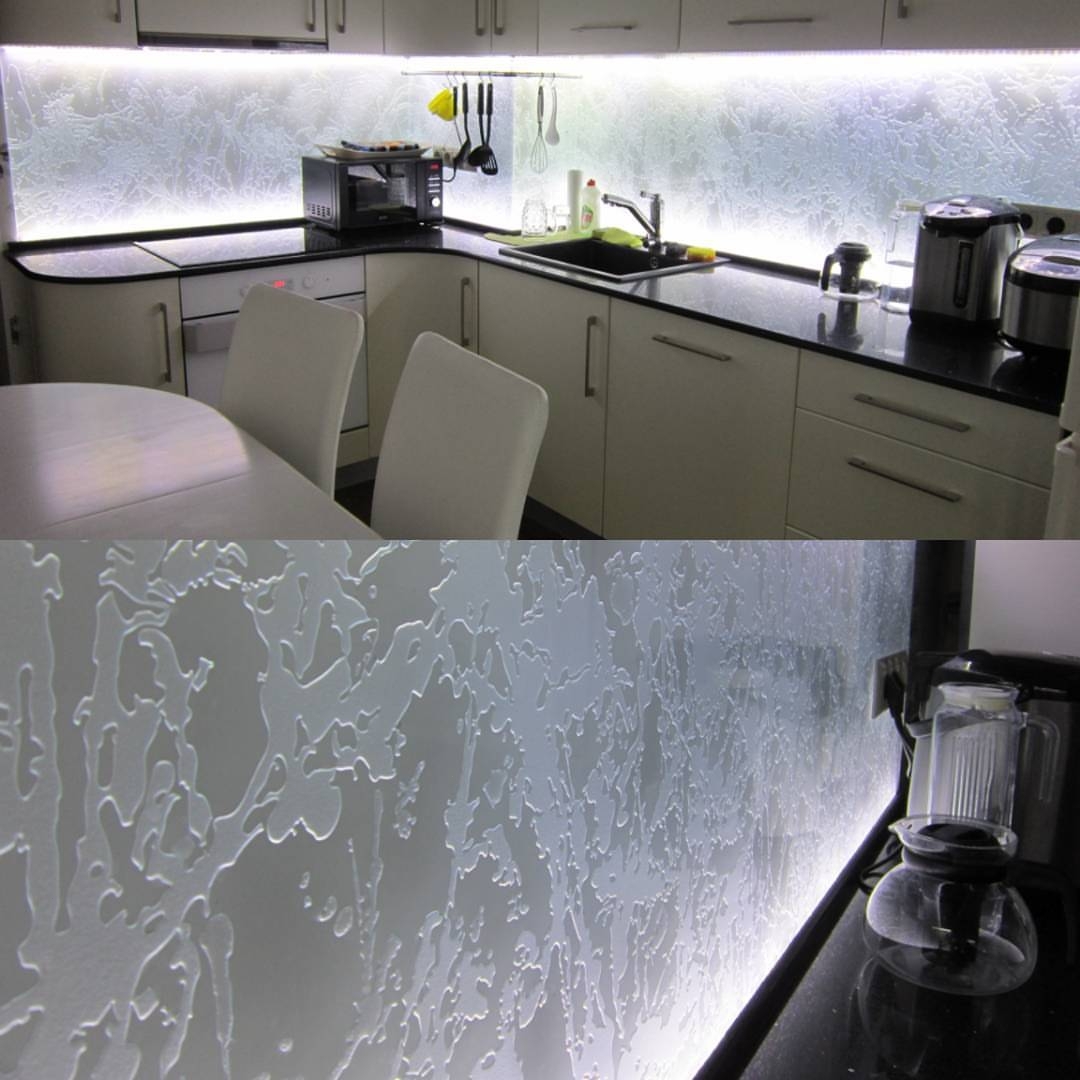 Но, это не главная особенность стеклянных панелей – главная особенность заключается в том, что UV-печать позволяет качественно нанести практически любое изображение, будь то фотография природы, города, лесной пейзаж, или просто набор орнаментов или схематичных изображений. Эта возможность делает скинали отличным элементом дизайна (дизайнер может изобразить на стеклянной поверхности практически все что угодно). Поэтому стеклянные фартуки являются превосходным украшением вашей кухни.